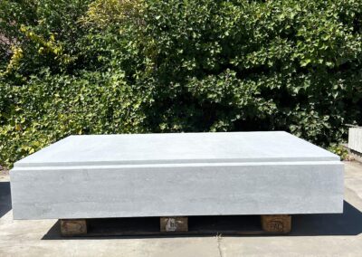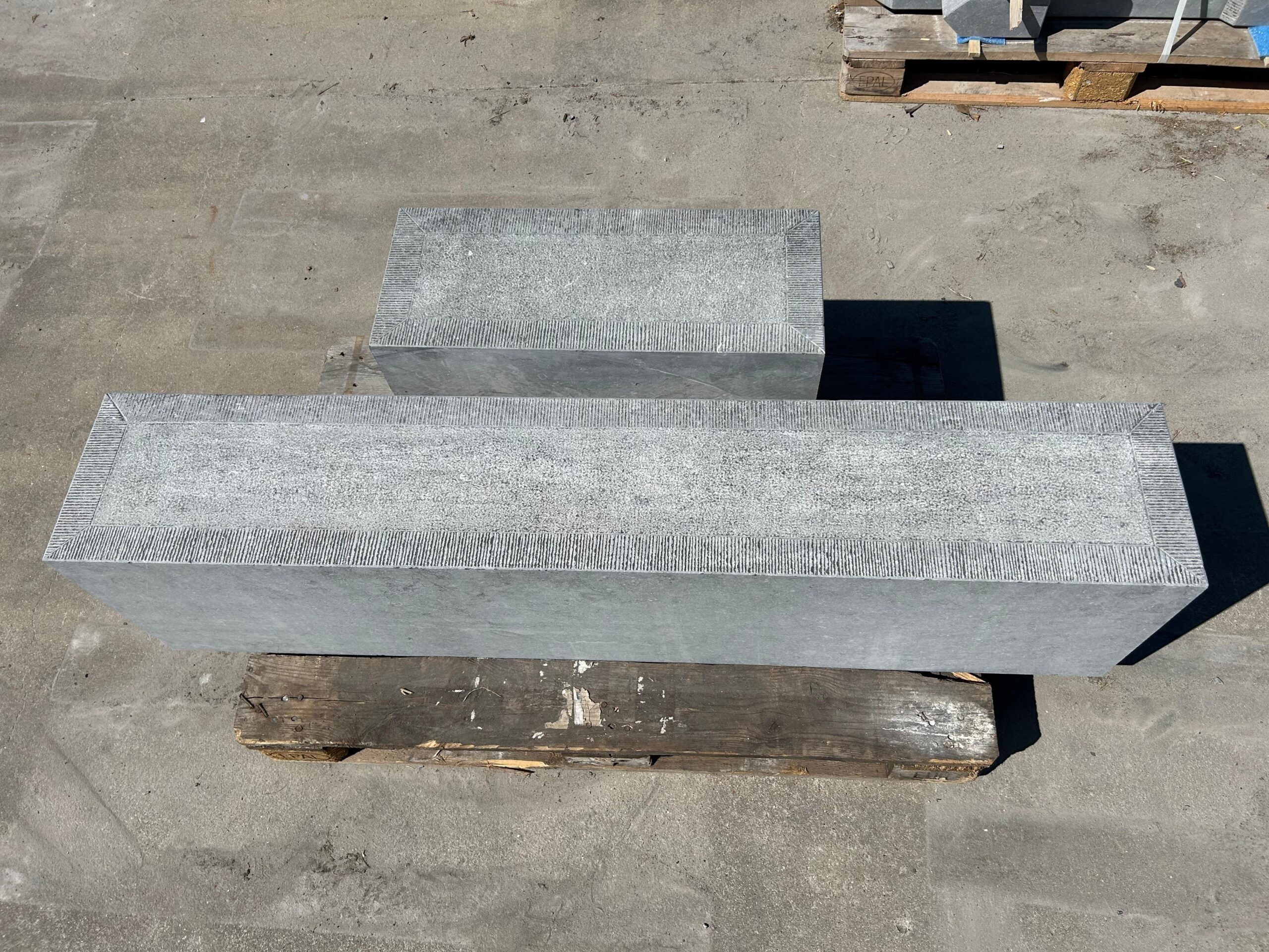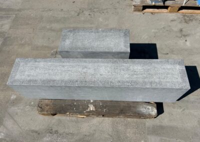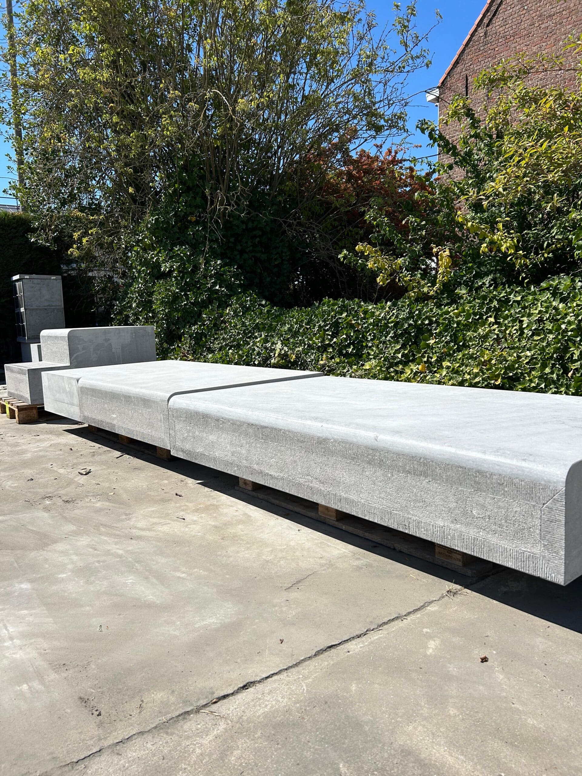 Alle natuurstenen elementen op de site zijn met de grootste zorg en vakmanschap afgewerkt. Onze ervaren afwerkers hebben elke steen manueel gekapt en gebouchardeerd, een arbeidsintensief proces waarbij het oppervlak met een bouchardeerhamer bewerkt wordt tot een karakteristieke, levendige textuur. Deze ambachtelijke aanpak garandeert niet alleen een authentieke uitstraling, maar ook een duurzame afwerking die het erfgoed en de kwaliteit van het materiaal eer aandoet.