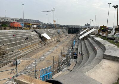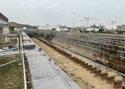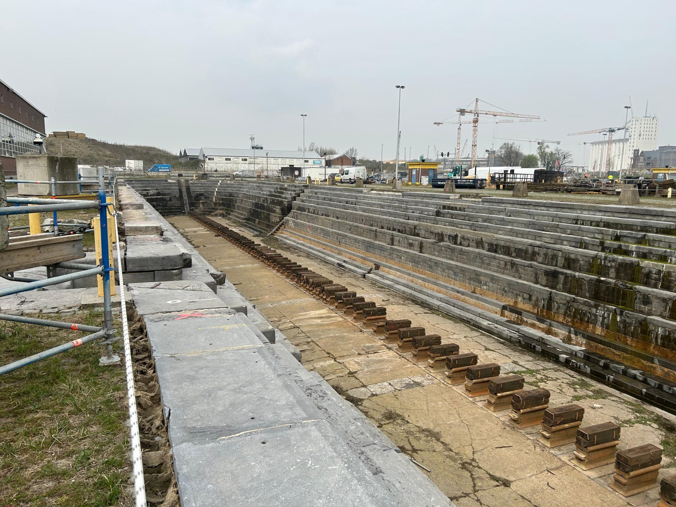 Voor de renovatie van de historische Droogdokken in Antwerpen leverde Granimar met trots de Belgische blauwe hardsteen – een materiaal dat perfect aansluit bij de robuuste uitstraling en het maritieme karakter van deze unieke plek.